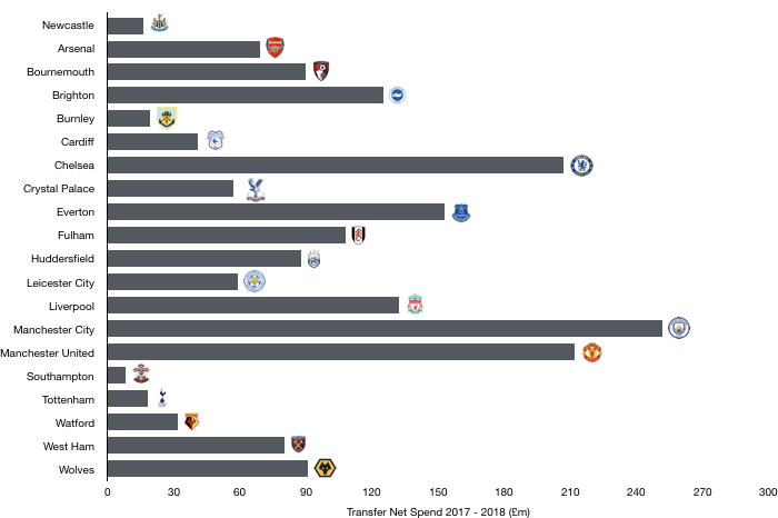 This led to a net transfer spend of £22.3m, up from a net transfer income of £33.4m last year. Despite this, this is a fairly low figure for a newly promoted club.
