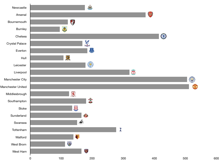 Wages were the main area to see a fall, decreasing from £112.2m to £93.6m (17%), unheard of after a team gains promotion. Wages would have fallen slightly due to bonuses paid out last year for promotion, however it is expected that incoming players will attract higher wages which didn’t happen in this case.