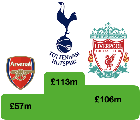Leading the way were Liverpool (£124m), Arsenal (£120m),
