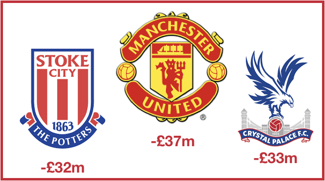 Palace (£33m) and Stoke (£32m) who all recorded rather large losses that will